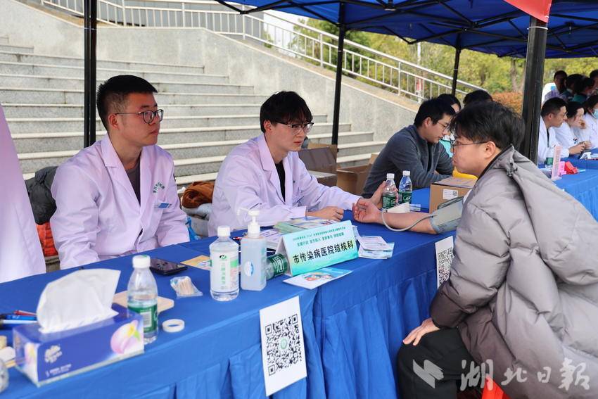 本次活动由黄冈市卫生健康委、黄冈市教育局主办,黄冈市白潭湖医院(黄冈市传染病医院)、湖北黄冈应急管理职业技术学院承办,黄冈市中心医院、市疾控中心、黄州区南湖社区卫生服务中心协办。市卫健委副主任、市疾控局局长胡红军,市教育局体卫艺科负责人谭荣,湖北黄冈应急管理职业技术学院副校长荀庆波等领导出席活动,市白潭湖医院、市中心医院、市疾控中心等多家单位的医疗专家、医护人员及学校20名学生志愿者共同参与,为现场近1000名师生提供全方位健康服务。