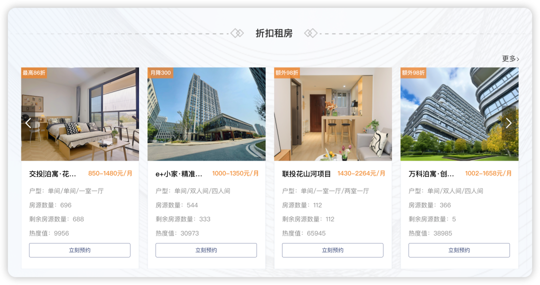 扫描下方二维码进入平台,点击“人才安居”-“折扣租房”,选择心仪项目。