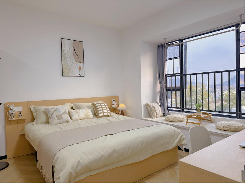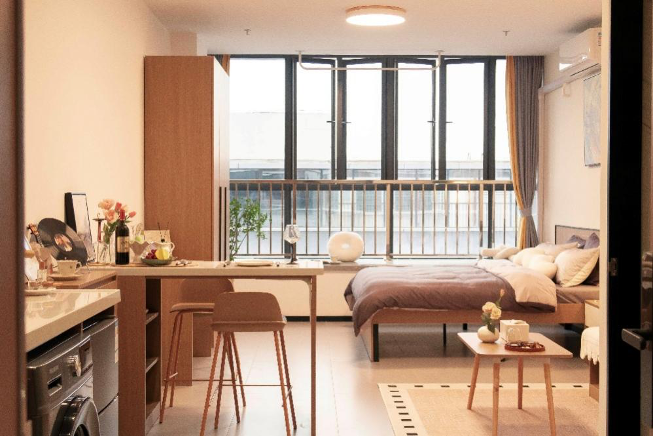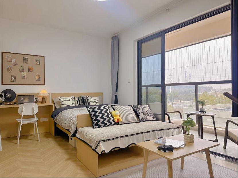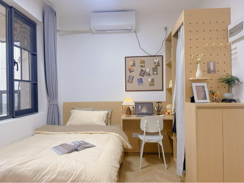 紧凑独立的私享空间,配备全套家具与基础收纳,实现“起居+办公”双功能,是独居青年的高性价比之选。