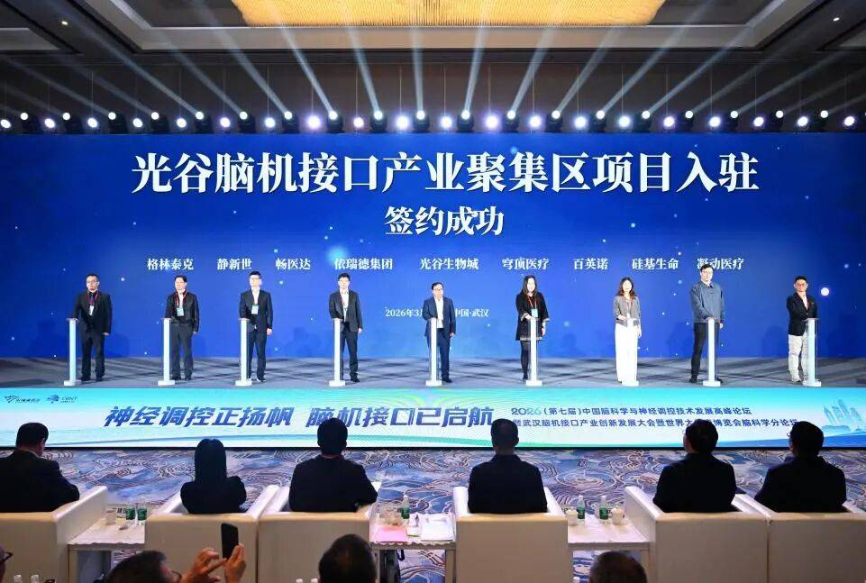 大会举行了多场签约和发布活动。畅医达、穹顶医疗等企业签约入驻光谷脑机接口产业集聚区。集聚区创新驱动核——国际脑机接口创新中心位于光谷生物创新园二期,由光谷联合同济医院、协和医院等共同建设,构建从概念验证、临床试验、注册检验到产业转化的全链条服务体系。
