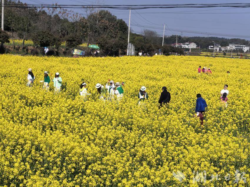 移步马桥花海,3000亩油菜花迎风摇曳,金灿灿的花浪翻滚,浓郁花香扑面而来。春日里,这里每天都能吸引近6000名游客徜徉花间,沉醉不知归路,同时也带动了当地农特产品销售,掀起一波热销新潮。