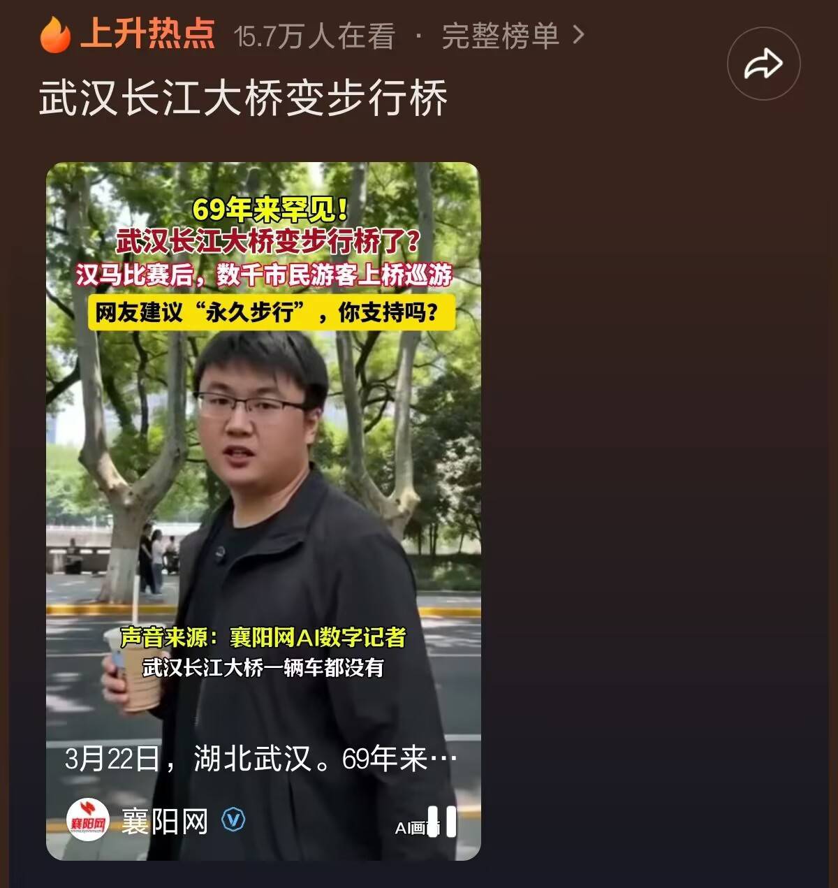 数字人记者以湖北日报襄阳分社记者为原型,依托人工智能技术打造,形象生动、表达流畅。