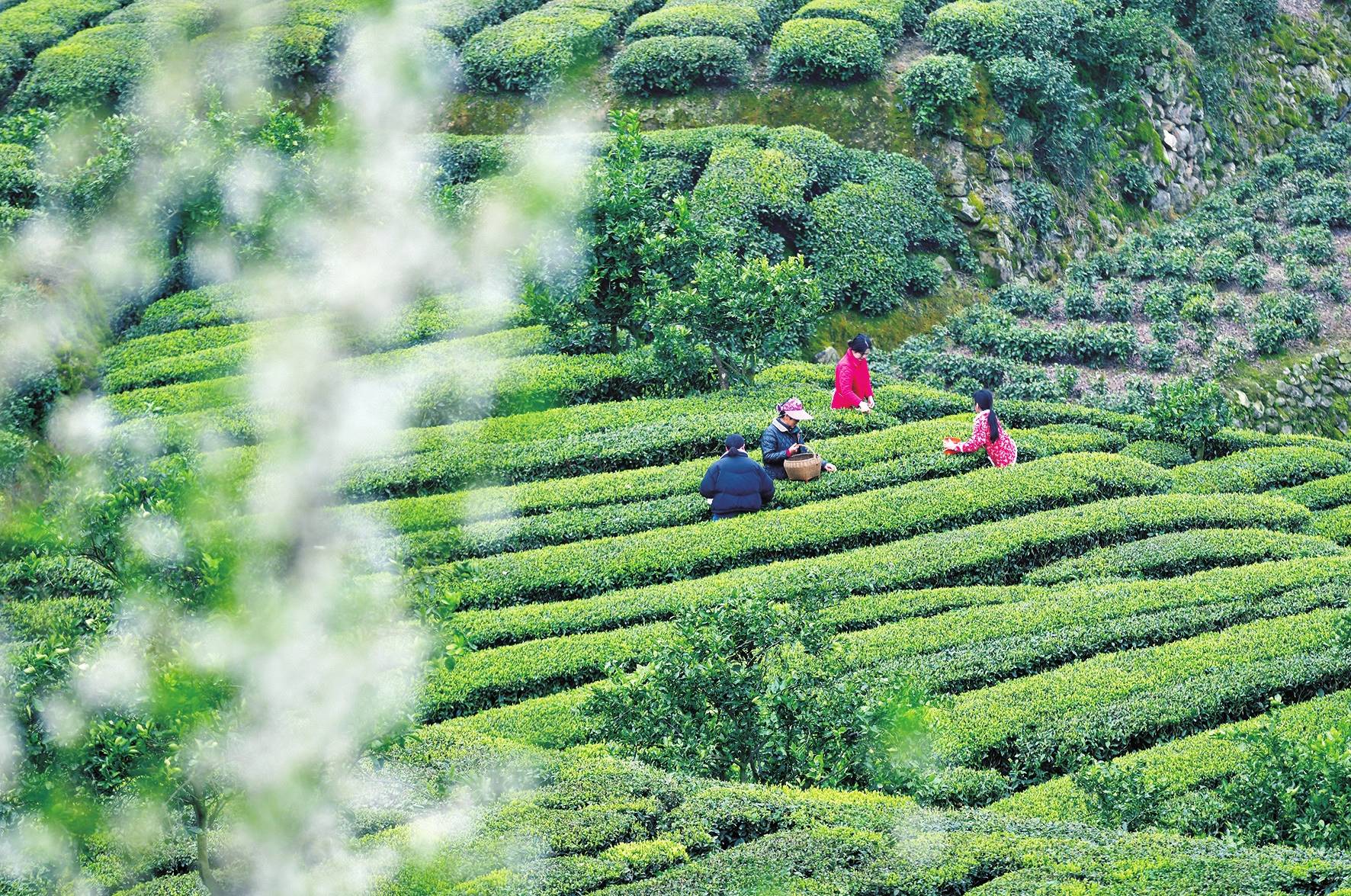 3月22日,茶农在秭归县茅坪镇松树坳村一生态茶园采摘“明前茶”。