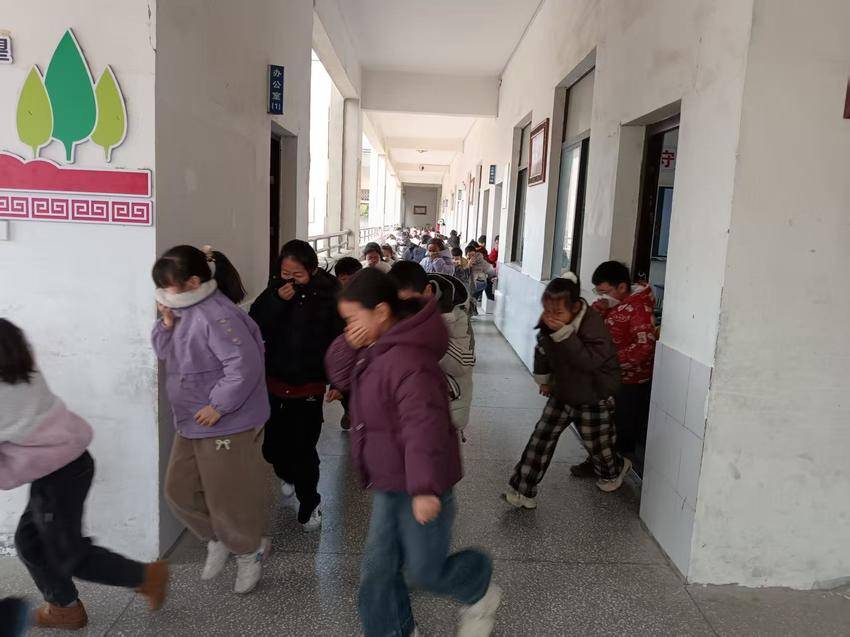 上午10:00,随着警报声响起,演练正式开始。模拟校园周边因火灾引发火情,火势迅速蔓延。各班教师立即指挥学生用手捂住口鼻、弯腰低姿,沿预定路线快速、有序撤离。楼道、拐角处,值守教师全程引导,提醒学生不推挤、不喧哗、不折返,确保疏散安全高效。在2分钟内,全校师生全部撤离至操场安全区域,各班迅速清点人数并逐级上报,无一人遗漏。