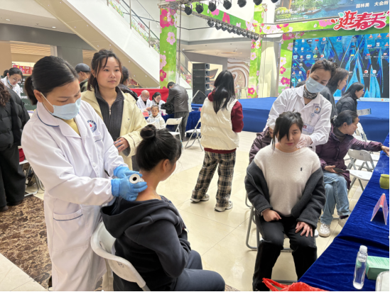 湖北日报客户端讯(通讯员王军珍)3月24日,武穴市中医医院走进万达广场,开展“人民健康”主题中医公益义诊活动,将专业医疗服务、特色中医技术和科学养生知识送到群众“家门口”,打造便民惠民的健康服务生态,让市民近距离感受中医药的独特魅力。