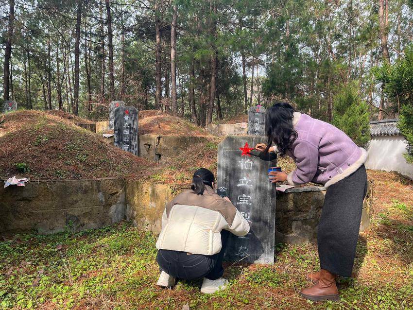 志愿者们手持扫帚、抹布、铁锹、垃圾袋等工具,分工协作、有序开展清洁维护。大家认真清扫园区道路,清除墓区周边杂草、落叶与杂物,对褪色、风化的烈士墓碑进行补漆描字,让碑文清晰醒目、庄重回朴。大家怀着崇敬之心细致劳作,不放过一处死角,用实际行动守护英烈安息之地。