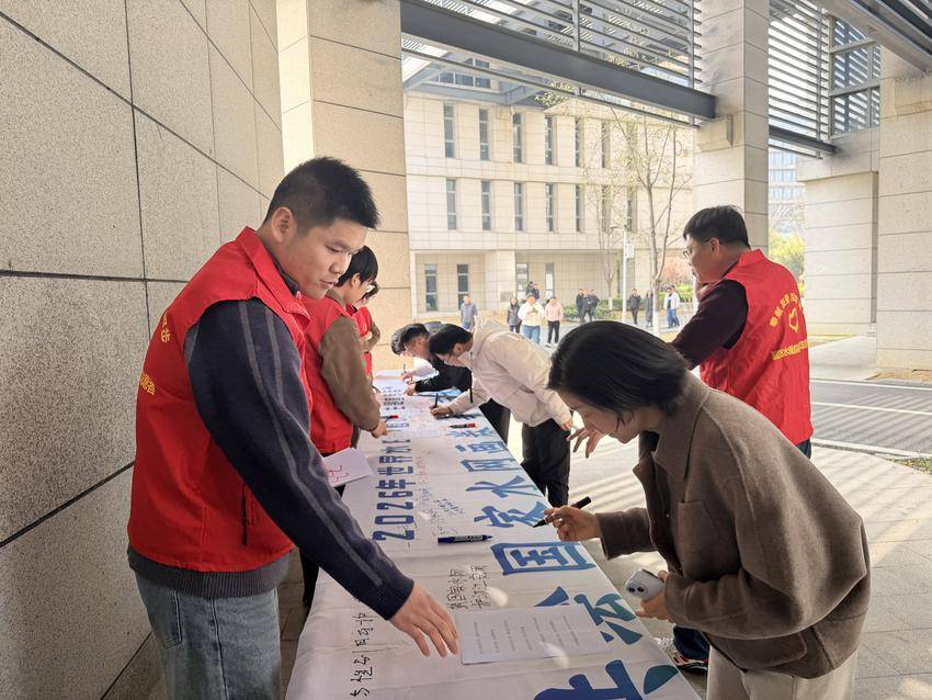 “筑国家水网,护汉江安澜”“以设计赋能水利,以平等守护水源”“科学规划水资源,同心共护生命源……”一句句铿锵有力、饱含深情的标语,不仅展现了大家对水资源保护的重视,更凝聚起共同护水的强大合力。志愿者们同步向参与人员讲解水资源现状、节水小技巧及水利规划相关知识,引导大家从自身做起、从点滴做起,养成节水护水的良好习惯,共同守护宝贵的水资源。