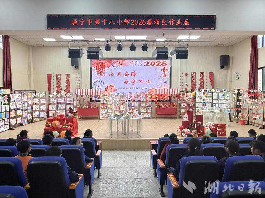 湖北日报客户端讯(通讯员:彭娟)为丰富学生寒假生活,落实“以学为中心”教育理念,近日,咸宁市第十八小学“小马奋蹄,乐学不止”2026 春季特色作业展在学校报告厅顺利开展。本次展览以“七马送福”为主题,一至六年级学子携寒假创意成果齐聚一堂,在趣味展示中收获成长。