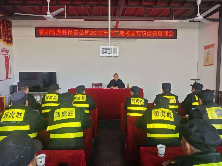 湖北日报客户端讯(通讯员廖明兰、王道勇)“钢叉盾牌要‘随手可取’,一键报警要‘一按就响’,五人小组要‘秒级联动’,要从‘被动看门’到‘主动作为’……”3月25日,襄阳润虎胜保安服务有限公司启动2026年第二期校园专职保安培训,不搞花架子,只练真功夫,围绕“实战”与“规范”,为守好校园“第一关”充电赋能。