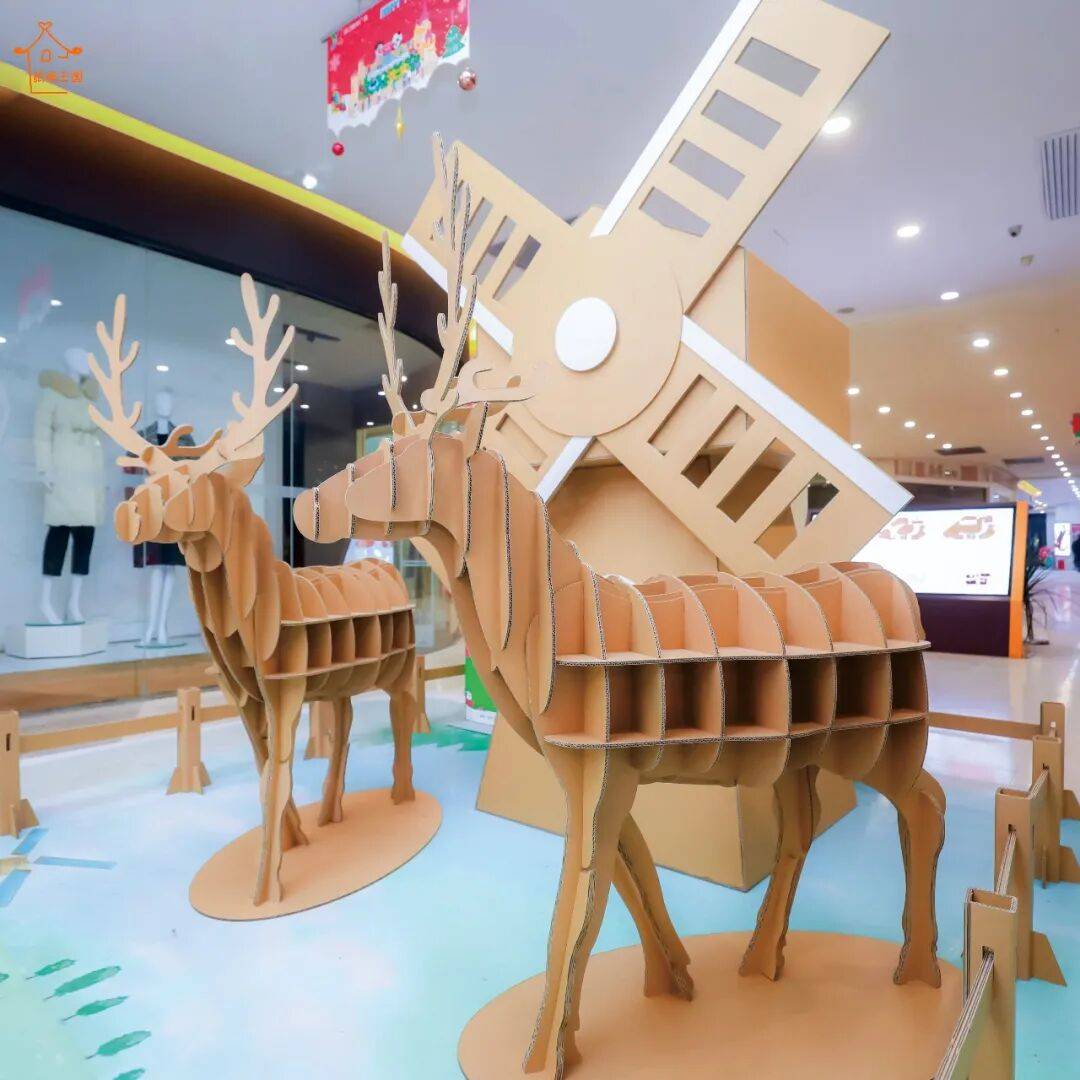 触动她的,不仅是材质本身的环保性,“这个材质百分百可回收,别的材质做展陈和活动,得花钱请人收垃圾,我们的放在那里,会有人主动来收走”,更有一种“传承与创新”的交织。夏利的父亲是木匠,她从小看惯了父辈用木材做出结实的物件,却因体力所限,始终无法参与。而纸板轻便、可塑,甚至能手裁,让创意落地变得触手可及。