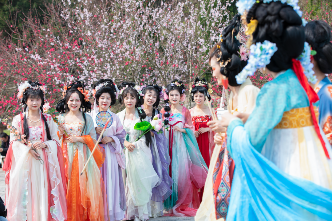 活动现场设置赏花打卡点,每个打卡点提供对应道具;现场提供面部彩绘、服装租赁、摄影跟拍等服务。