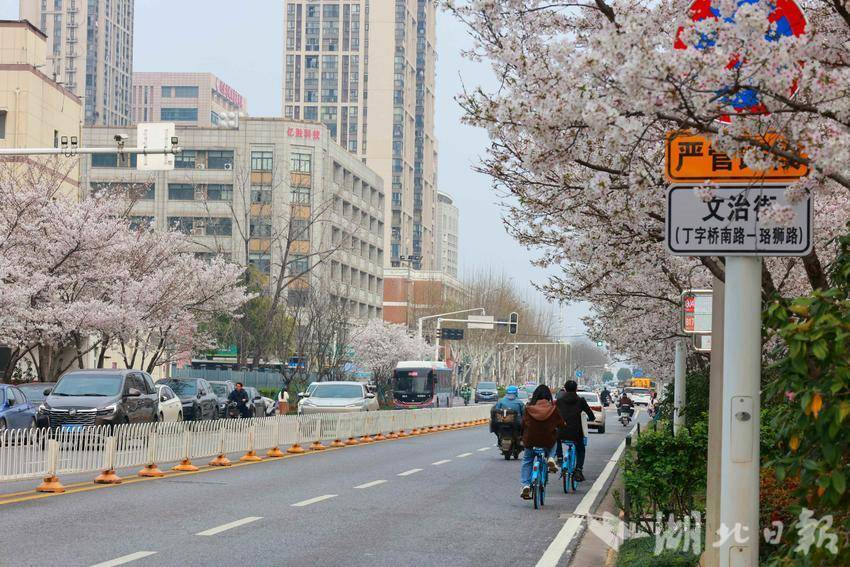 这条“樱花大道”不仅是一条流淌着青春气息的“上学路”,更是一条跃动着创新脉搏的“科创路”。它紧连南南湖硅巷·环理工大创新街区,沿线武汉理工大学的学子们骑车穿行花廊,车轮轻碾落英,意气风发的身影与烂漫花影交相辉映;一路之隔,科创园区内涌动着创新的热潮,青春与智慧在此交汇,让这条道路既有书卷气的浪漫,更激荡着面向未来的活力与张力。