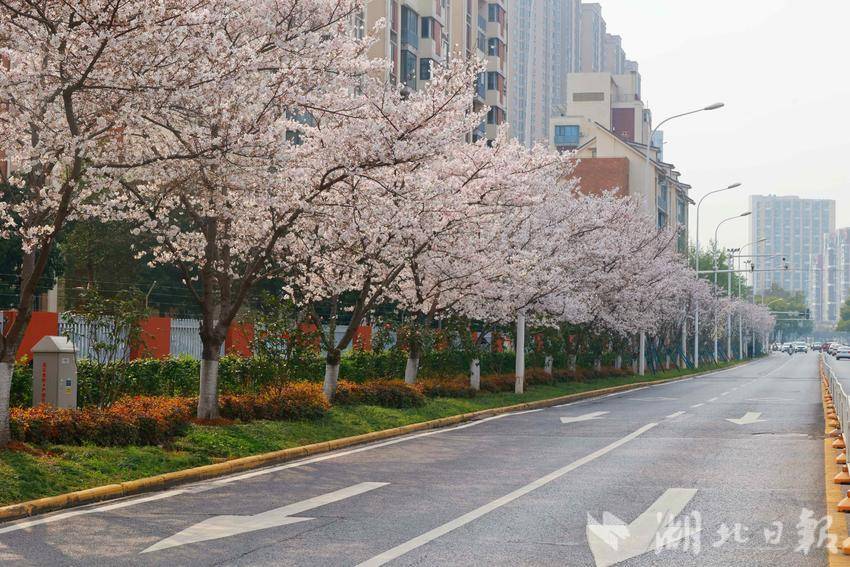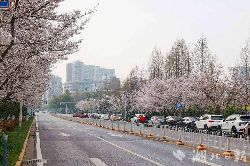湖北日报客户端讯(通讯员方小齐、赵莹莹、徐晶、邓洲)当玉兰芳华渐次谢幕,武汉市洪山区文治街迎来了一年中的“高光时刻”——近500米长的“樱花大道”如约绽放,从武汉理工大学书城路一侧延展开去,灿若云霞,为江城春日铺开一幅流动的画卷。