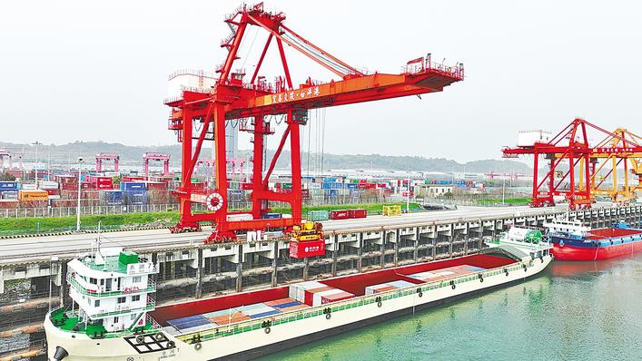近日,宜昌港务集团白洋港区的作业现场,呈现一派热火朝天、井然有序的装卸繁忙景象。作为长江经济带重要的物流枢纽,去年白洋港区累计完成集装箱吞吐量13.15万标箱,同比增长7.74%;散货吞吐量达到230.36万吨,同比激增52.58%。今年以来,白洋港累计完成集装箱吞吐量3.2万标箱、散货吞吐量71.18万吨,生产经营实现首季“开门红”。(视界网 刘卫东 摄)