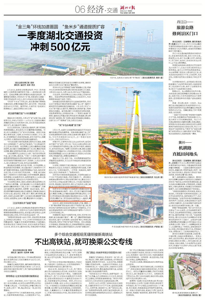 一季度湖北交通投资冲刺500亿元