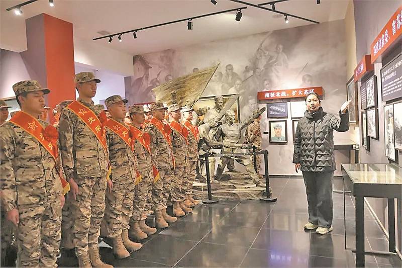 3月18日,在宜城市烈士陵园革命烈士纪念馆,预定新兵接受红色教育。(来源:襄阳日报