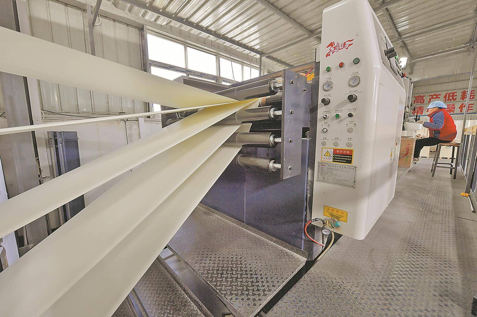 3月26日,在湖北华海纤维科技股份有限公司生产车间,工人各司其职,设备高速运转,呈现出一派繁忙有序的生产景象。今年以来,企业已生产文化用纸、白卡纸等产品2万吨,产值突破9000万元。(来源:襄阳日报 安富斌 通讯员 陈月林 张恒瑞 摄)