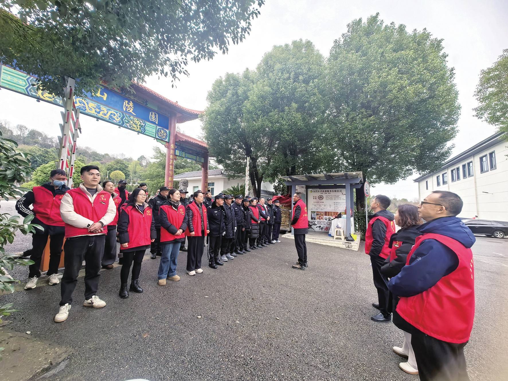 猇亭区水晶山陵园安排部署志愿者服务内容。(通讯员曾华清 摄)