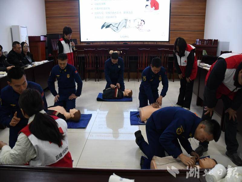 湖北日报客户端讯(通讯员:周刚)3月26日,五峰消防救援局联合县红十字会开展应急救护培训。培训采用理论讲解与实操演练相结合的方式,重点讲解心肺复苏、AED使用及创伤止血包扎等核心技能,现场指导参训人员规范操作。此次培训有效夯实参训人员急救基础,提升应急救护水平,为守护辖区群众生命安全筑牢防线。