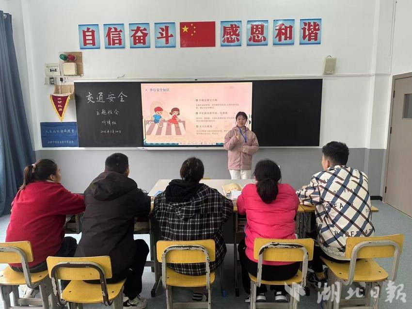 湖北日报客户端讯(通讯员陈利蓉、吕品品、邓瑞欣)近日,钟祥市特殊教育学校开展交通安全专题教育系列活动,通过课堂教学、线上联动、现场劝导等多种形式,织密师生及家长出行“安全网”,构建起“三位一体”的安全教育体系。