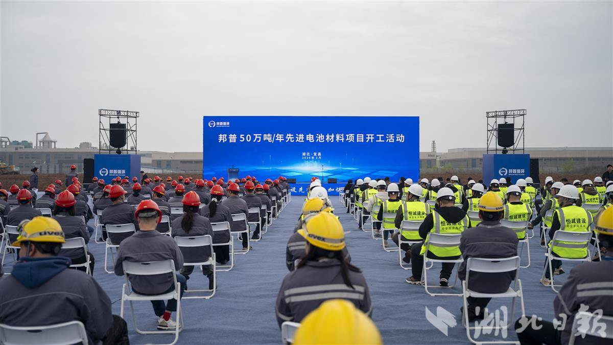 湖北日报讯(记者刘路)3月26日,宜昌高新区白洋工业园,总投资61亿元的邦普50万吨/年先进电池材料项目开工。5天前,同样在这片园区,总投资136亿元的宜化集团100万吨/年磷氟新材料及配套项目刚刚破土动工。一周之内,两个重大项目接连落地,总投资近200亿元,为宜昌新能源新材料产业注入强劲“新动力”。