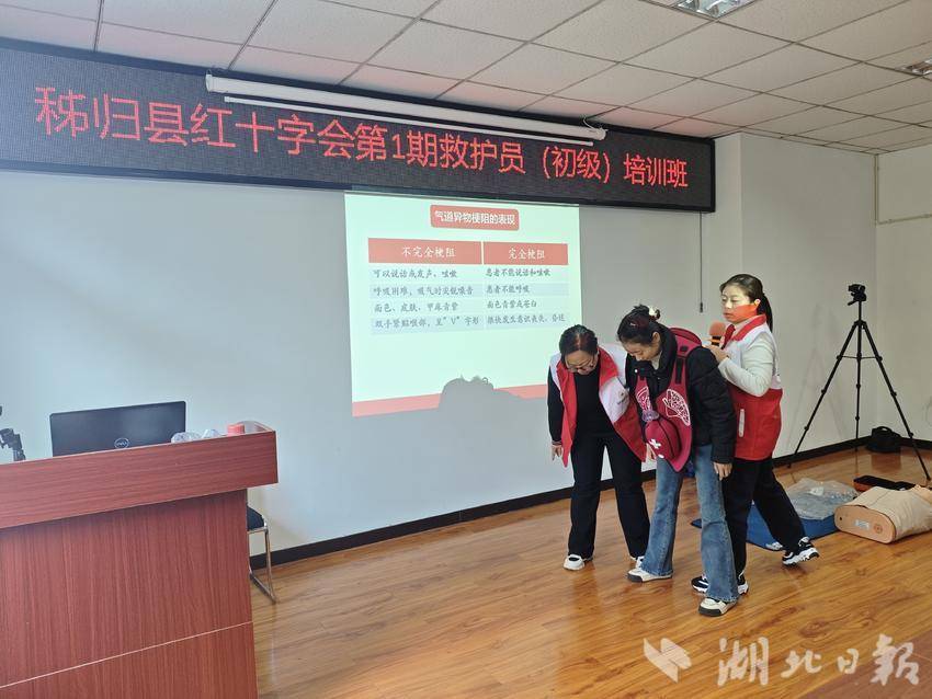 湖北日报客户端讯(通讯员邓海林)3月27日,秭归县红十字会应急救护师资团队走进秭归华航职校,为该校养老护理班学员举办第一期初级救护员培训,进一步提升养老护理专业学员的急救技能与职业素养。