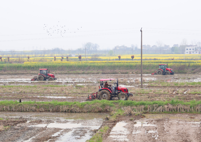3月24日,天门市惠丰水稻种植专业合作社种植基地,大型农机正抢抓农时耕整农田,为机械播种作准备。该合作社围绕水稻标准化生产,推行统一品种、统一测土配方、统一集中育秧插秧、统一绿色防控、统一机耕机收、统一订单收购“六个统一”服务模式,形成了从种植到销售的完整水稻生产服务链条,年度作业服务面积达3万余亩。湖北日报客户端讯(通讯员王帅 摄)