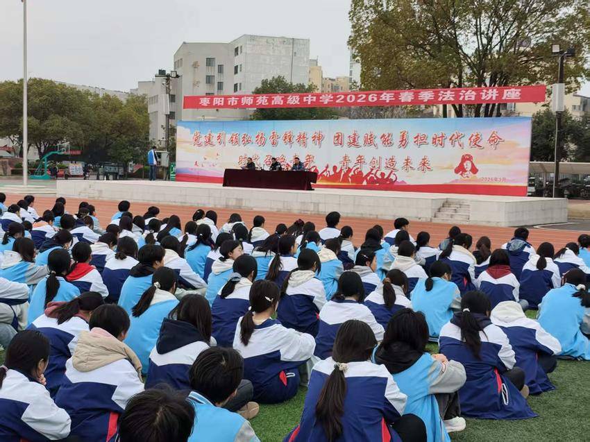湖北日报客户端讯(通讯员李俊洋、李璐)3月25日,枣阳市公安局北城派出所组织民警深入枣阳市师苑高级中学,开展以“禁毒反诈、防欺凌、防溺水”为主题的春季法治专题讲座,全体师生参与。