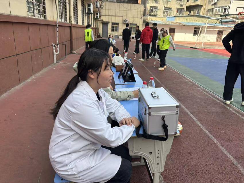 赛场之上,孩子们奋力拼搏;赛场之侧,保障力量温暖守护。汉江街社区卫生服务中心的医护人员全程坚守岗位,坐在场边随时待命,专业的急救箱整齐摆放,为孩子们的健康安全筑牢防线。同时,学校的裁判老师、带队老师也全程在岗,公平执裁、暖心鼓励,让比赛在有序、温暖的氛围中顺利进行。