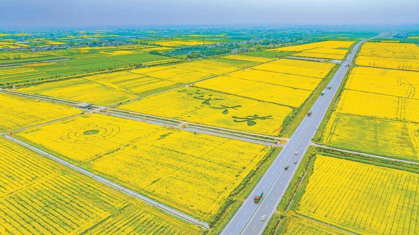 湖北日报客户端讯(通讯员郑恒)近年来,仙桃市以花为媒,打造“春日经济”新业态,高标准农田变身网红打卡地,带动乡村旅游与产业发展。图为3月25日,航拍视角下的三伏潭镇三湾村油菜花海。