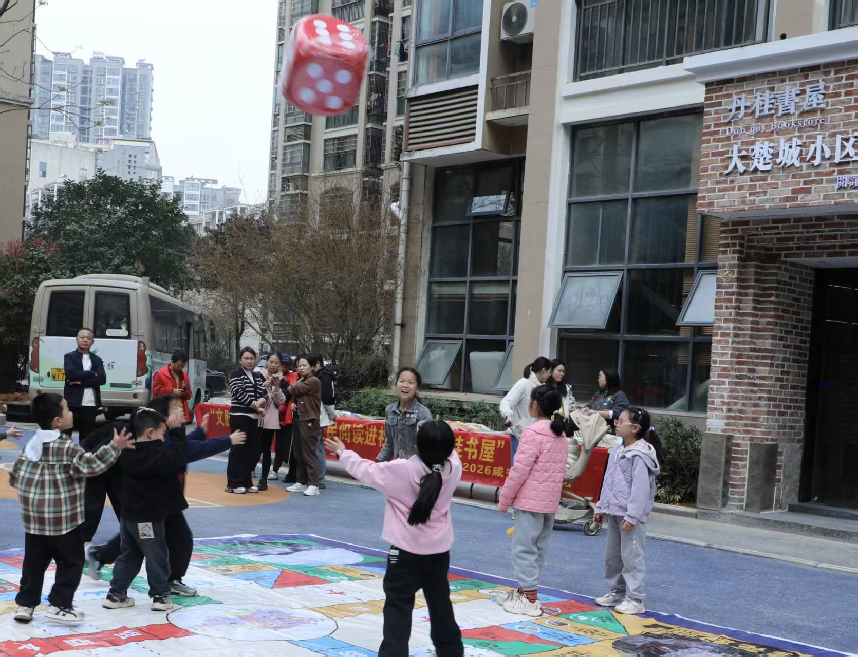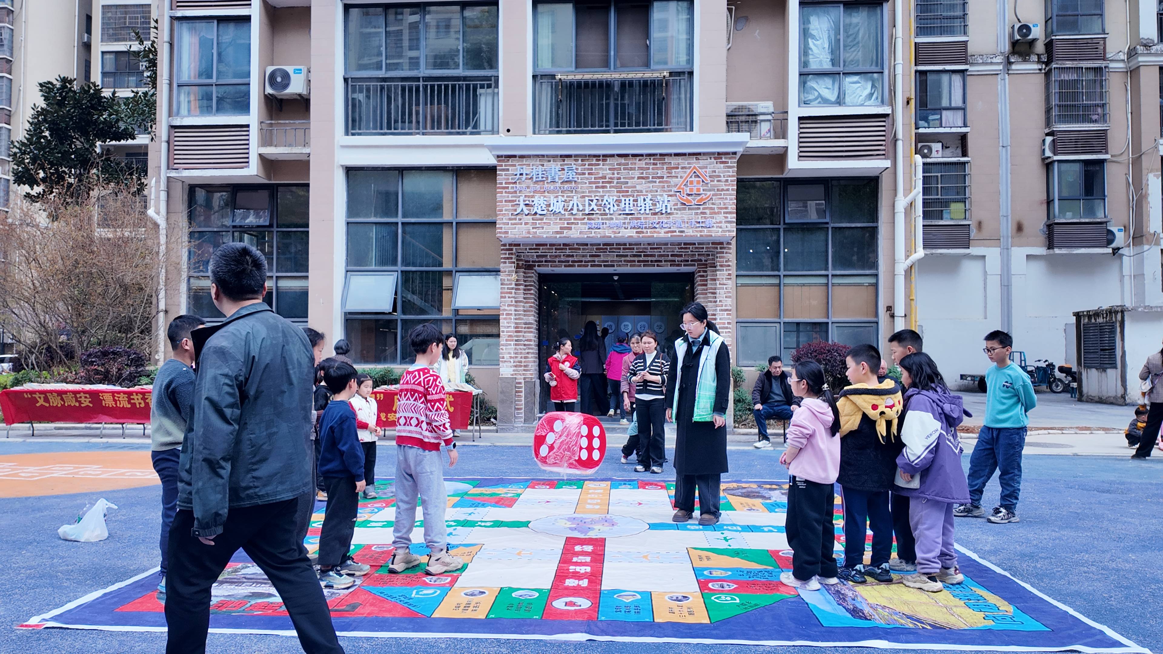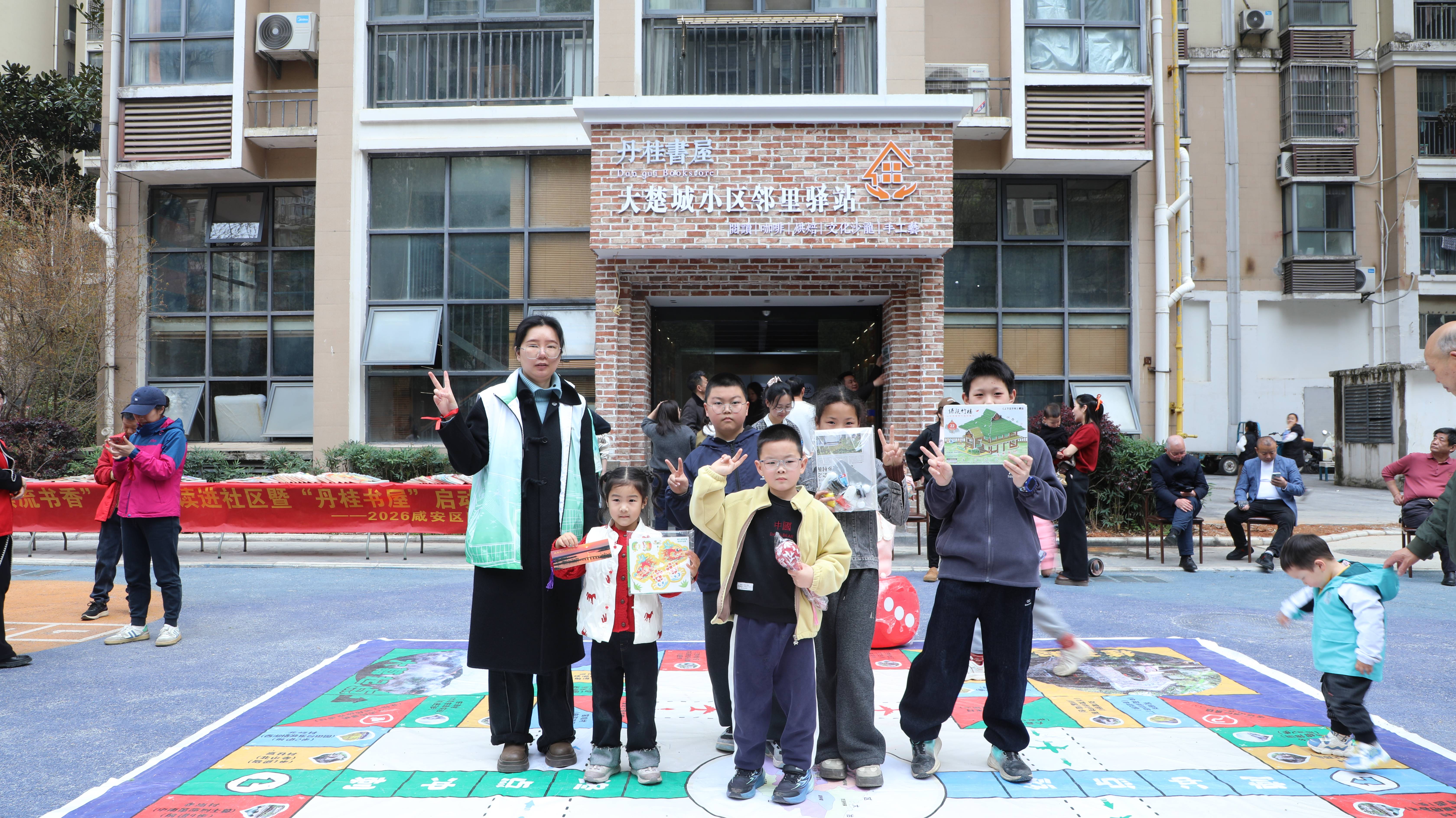 为进一步增添活动趣味性与吸引力,书屋外还特别设置了以飞行棋为主题的特色人文互动游戏。将咸安本土民俗风情、移风易俗新风尚等元素融入巨型棋盘,打造特色“咸安人文地图”。孩子们化身“小棋子”各展风采,现场欢声笑语不断,表现优异的参与队伍还获得了图书馆员送上的精美小礼品,成为社区一道温暖的文化风景。随着启动仪式圆满落幕,丹桂书屋正式对外开放,成为咸安区又一基层文化新地标。
