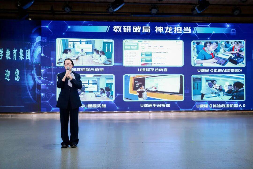 活动现场,神龙小学教育集团总校长韩瑾与教育部义务教育信息科技课程标准专家组组长熊璋教授展开线上对话,共话区域AI教育发展新路径。随后,来自集团各分校及跨区域教育同仁带来的AI教育实践分享,用鲜活的课堂故事,诠释了从“用AI”到“造AI”的深度跨越。