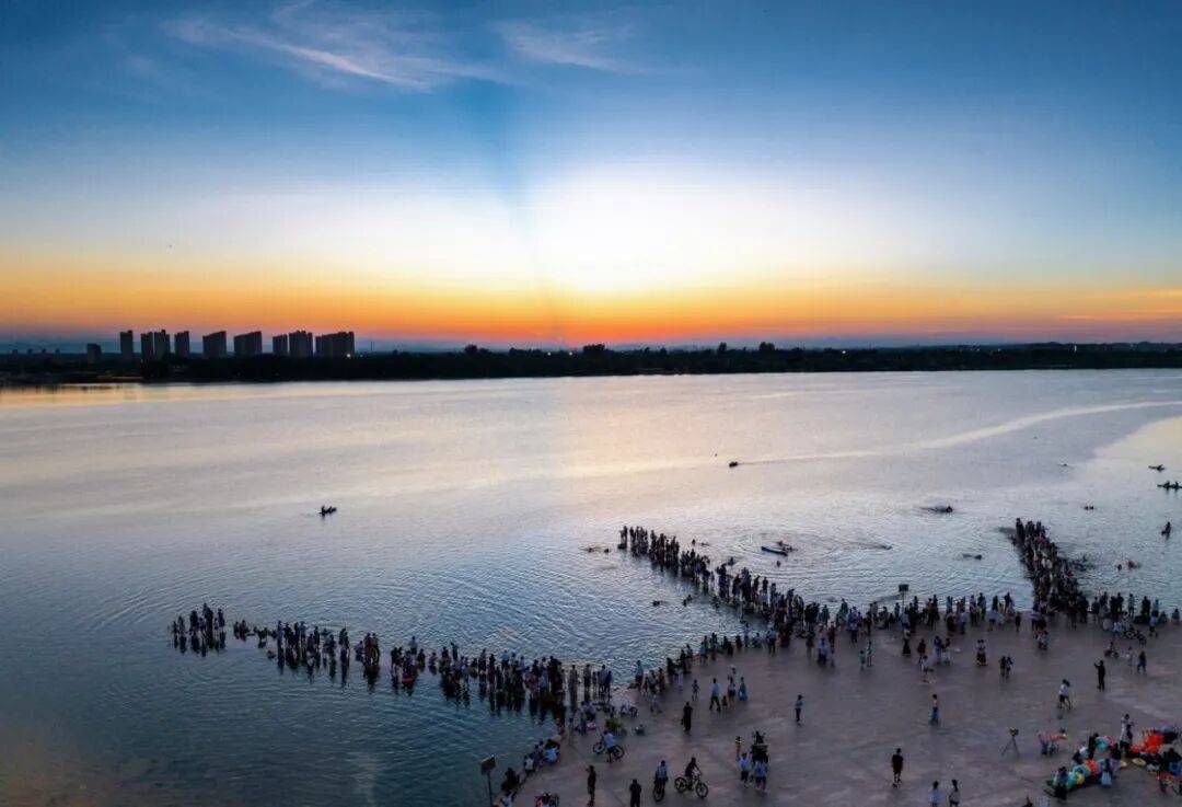 看太阳慢慢沉进湖面