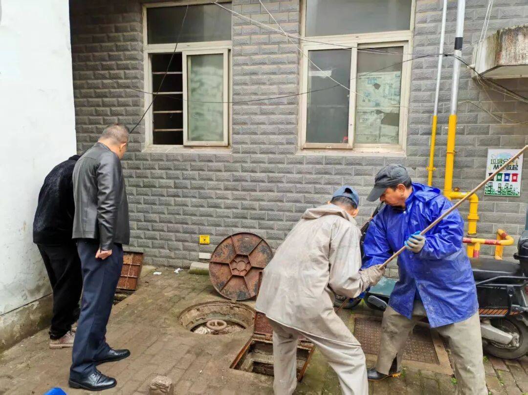 得知这一紧急情况后,李胜洪迅速行动,带领执法队员与社区工作人员第一时间赶赴现场。到达现场后,执法中心队长李胜洪、环卫中心主任李伟以及社区主任刘莉迅速靠前指挥,组织相关人员展开工作。他们首先带领环卫工作人员对污水井进行细致排查,精准定位堵点,随后现场敲定处置方案,确保后续工作有序开展。