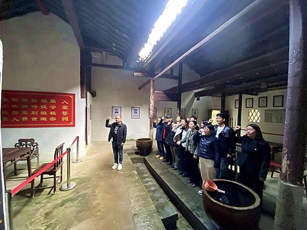 在中共大冶县委成立旧址——金公祠内,全体党员重温入党誓词,铿锵恢宏的誓词,强烈震撼着在场的每一位党员。随后,还踏寻了饶惠谭将军故居及革命烈士碑林。