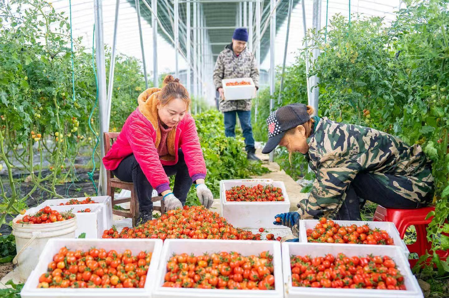 大箕铺镇方至畈村,湖北东冶农业科技有限公司的蔬菜大棚暖意融融。红彤彤的小番茄挂满藤蔓,工人们穿梭田垄,指尖翻飞间将成熟果实收入篮中。水南湾村的大冶市展旺智慧农业有限公司基地里,数名工人分成两组忙碌:一组在大棚内铺设地膜,为后续种植打牢基础,另一组在已铺好地膜的田垄间,小心翼翼栽种贝贝南瓜苗。“栽苗时别让苗秆碰到地膜,太阳暴晒会烫伤瓜苗,影响生长。”公司技术员吴学文的叮嘱声在田间回荡。大箕铺镇各蔬菜基地抢抓农时,采收、播种两不误,稳稳托住市民“菜篮子”。