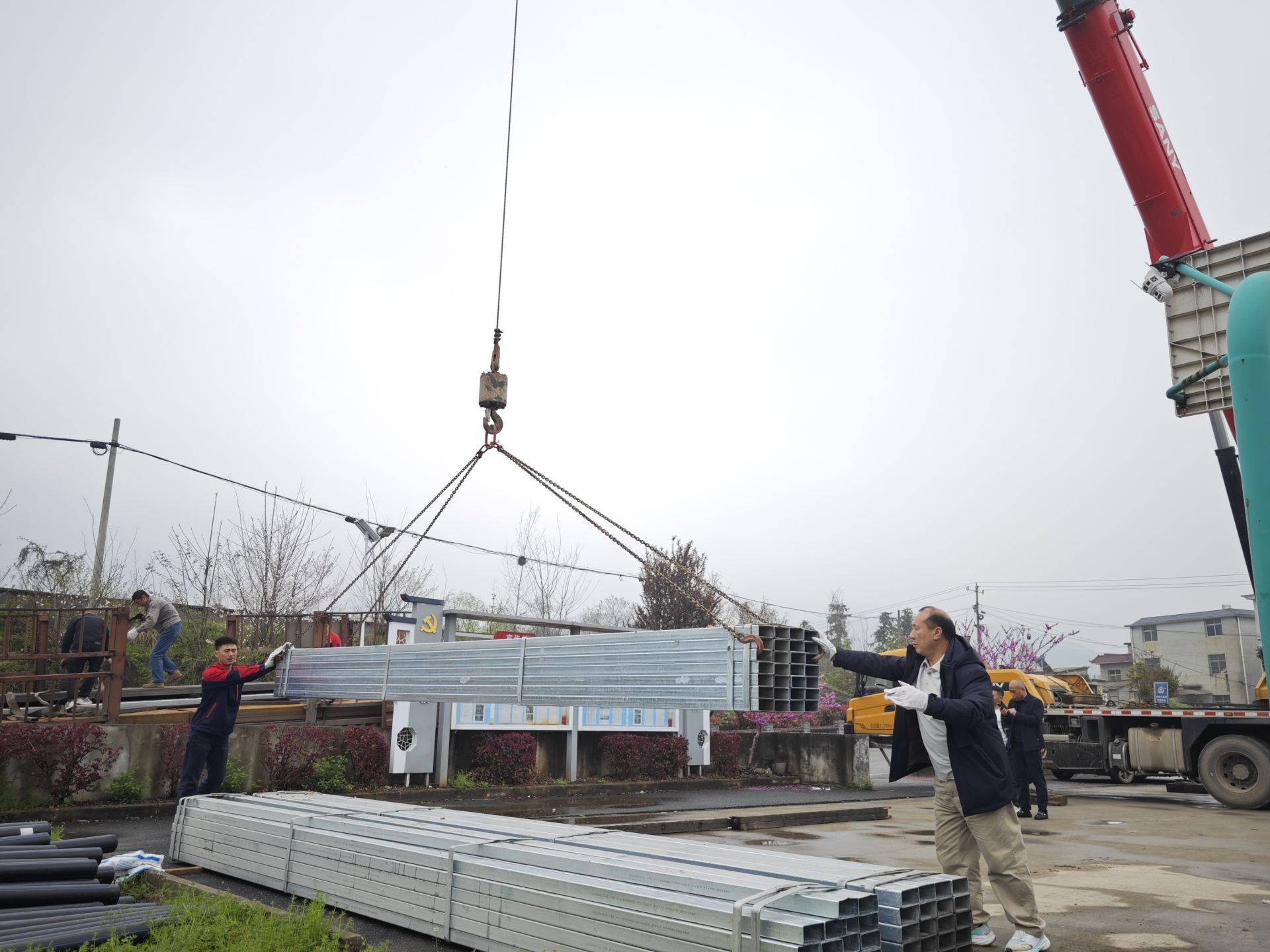 湖北日报讯(通讯员 李尚书)3月27日,金湖街道宋晚村村委会门前一派繁忙景象,一台吊车伸展长臂,将一件件钢结构从货车上平稳转运至门前整齐码放,工人们各司其职、有序作业,这里正在紧锣密鼓推进村委会改造临时游客中心项目。