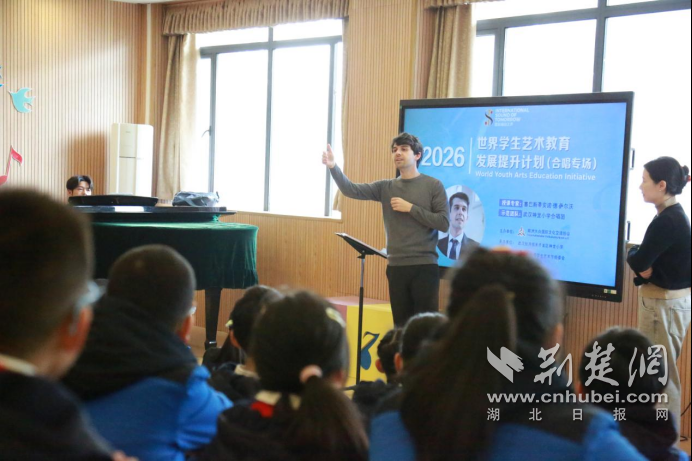 清澈的童声时而轻柔如晨曦微露,时而激昂如霞光万丈……3月27日上午,武汉经济技术开发区神龙小学的校园里歌声悠扬、掌声阵阵。由欧洲大众国际文化交流协会主办的“明日之声”2026世界中小学“优秀示范团”艺术教育交流合唱专场大师课在神龙小学校举行。