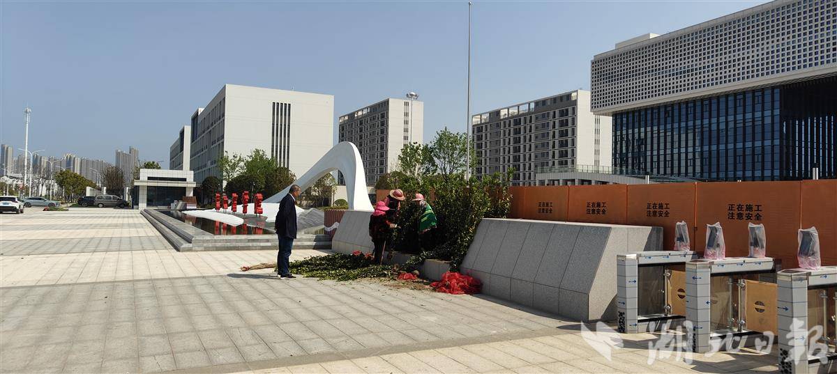 门口绿化仍在完善中。湖北日报全媒记者 汪洋 摄