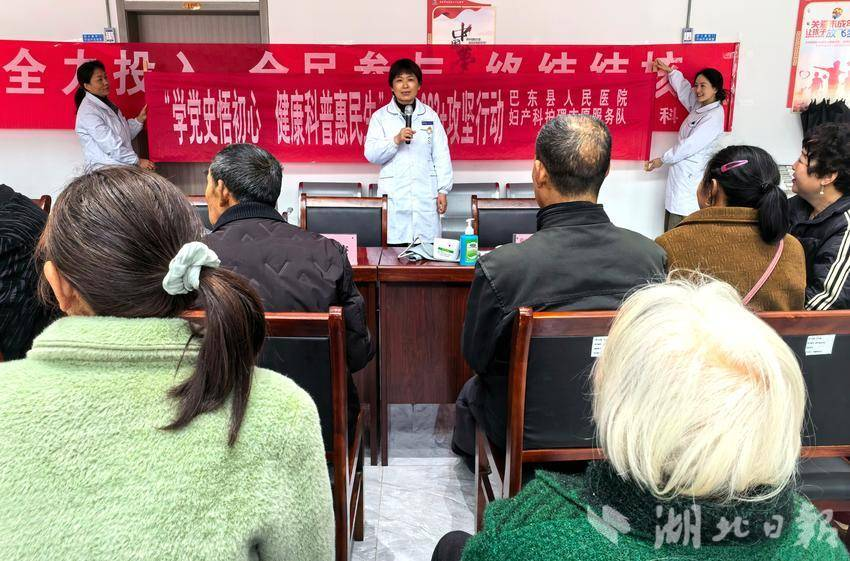 “大家别紧张,我们今天不是上课,是聊天。”巴东县人民医院妇产科医生谭学新站在前面,手里没有讲稿,只端着一杯水,笑眯眯地看着大家。一场关于“早孕关爱”的健康科普,就这样在三月末的暖阳里,在这片充满生活气息的社区里开始了。