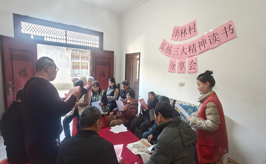 为深入传承弘扬大别山精神、抗洪精神和抗疫精神,近日,泽林村举办弘扬“三大精神”读书分享会,邀请“泽林好人”黄金和走进农户、贴近群众,开展专题宣讲。党员代表、妇女代表、退伍老兵及村民群众齐聚一堂,共赴这场精神传承的盛会。