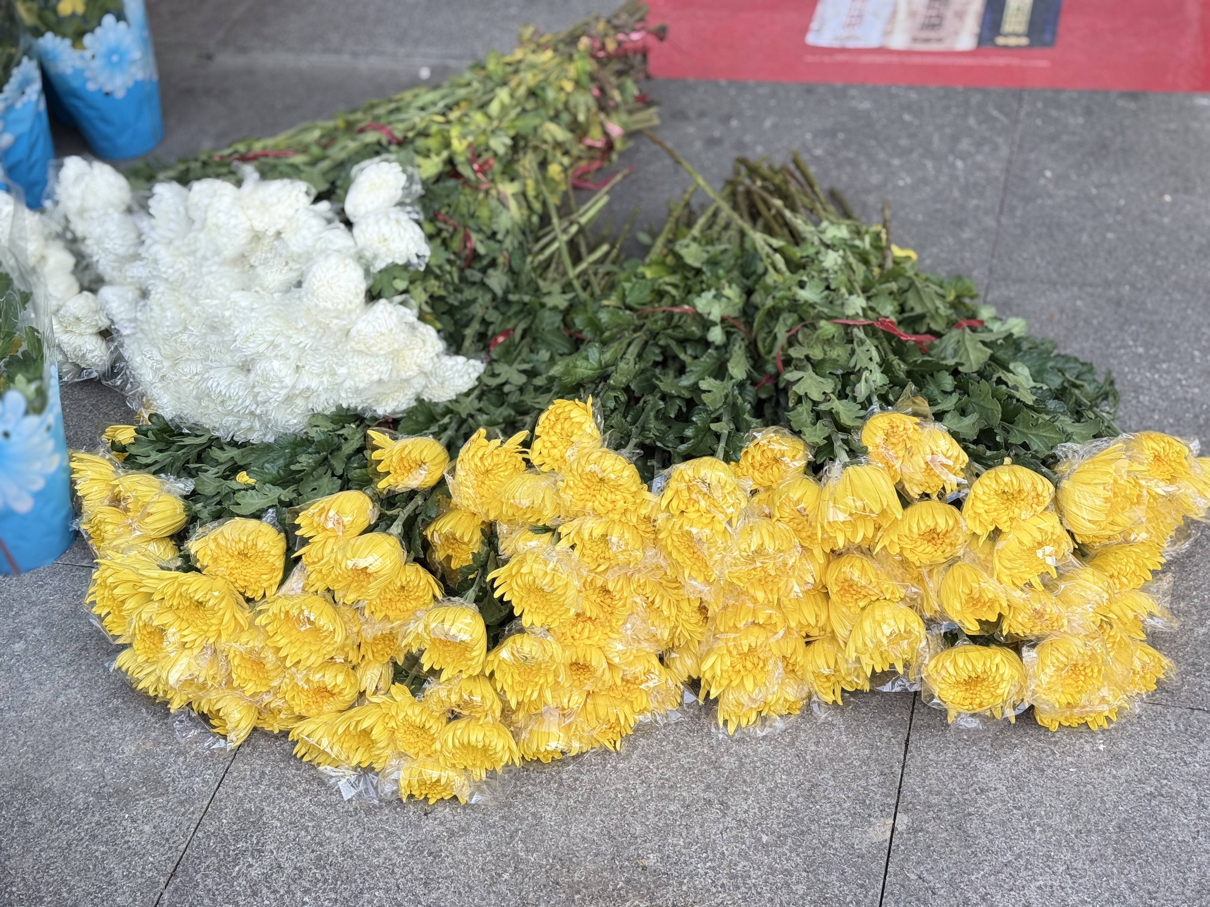 “这几年买菊花祭祀的人越来越多了,一年比一年多。”樊店长感慨道,过去祭祀时,很多人习惯买塑料花,觉得可以摆放久一点。但近两年,大家的观念慢慢在转变,“用鲜花更环保,烧纸钱的也少了,大家更看重心意表达。”