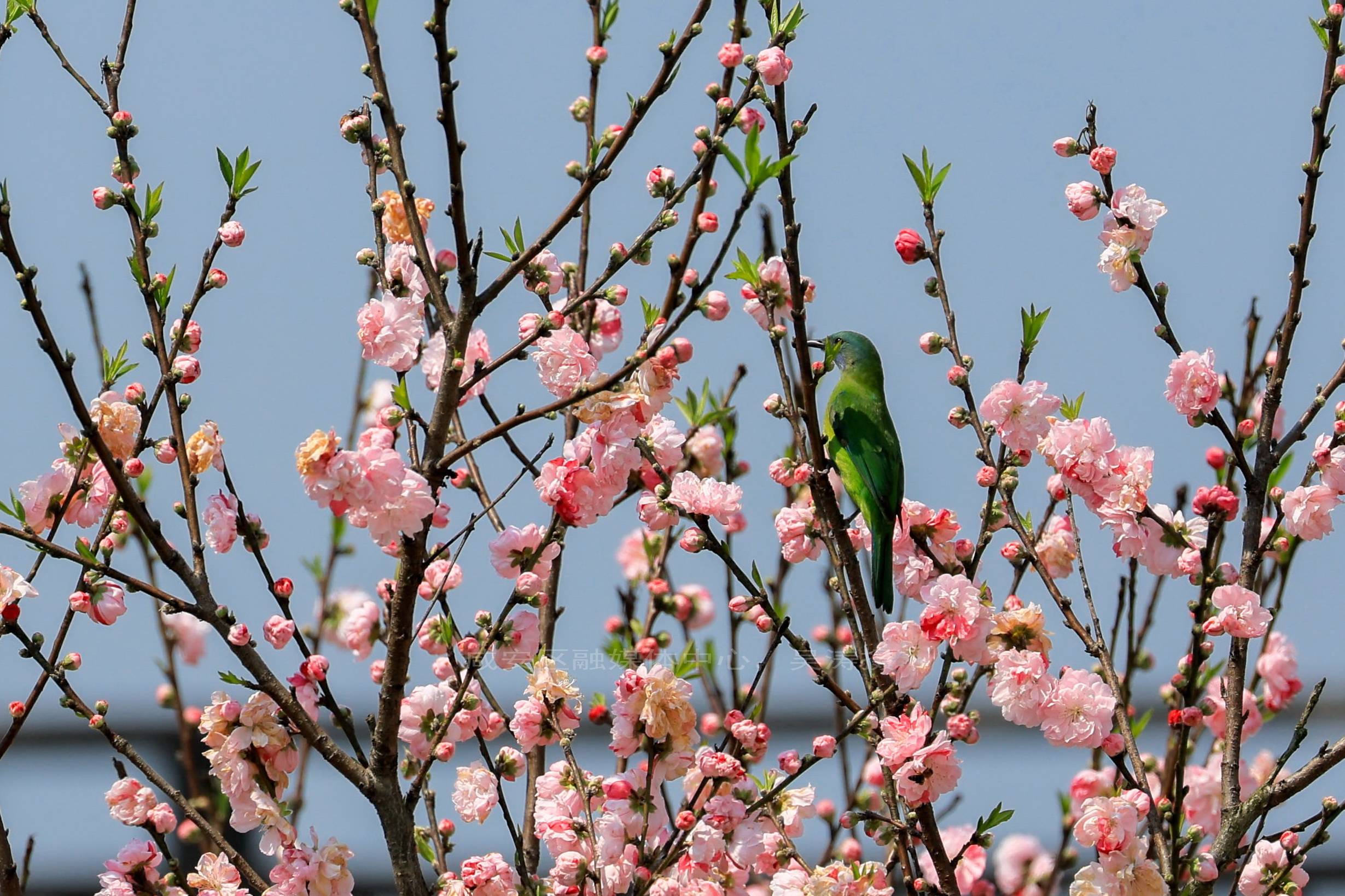 飞鸟栖花枝,花香漫山野