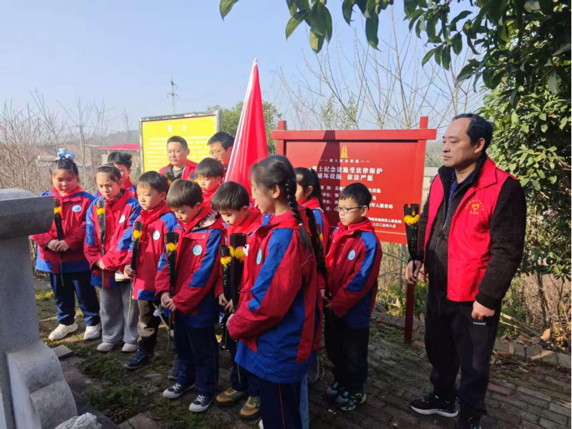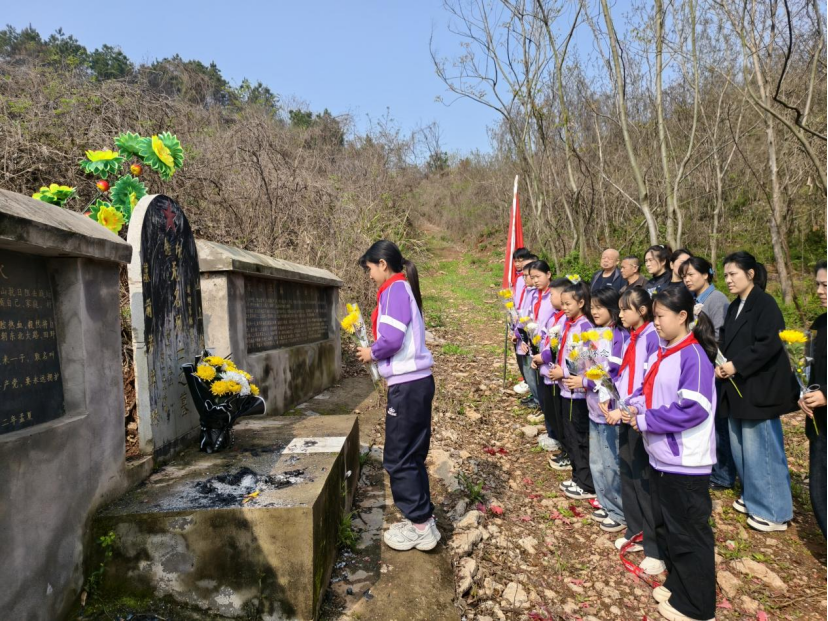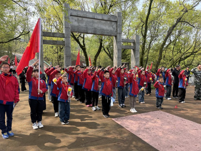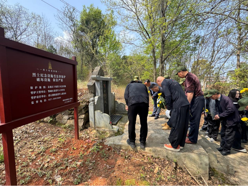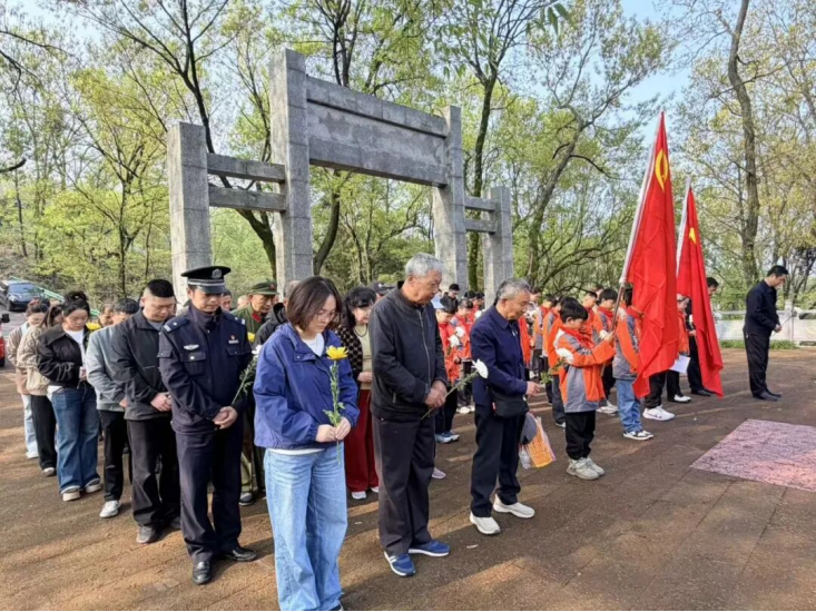 旭东中心小学组织学生代表,赴杨先台烈士墓开展祭扫活动。肖俊 摄东王小学组织少先队员代表,前往梧桐湖新区月山村战斗烈士纪念碑开展祭扫活动。简子俊 摄旭光中学组织教师代表及优秀学生代表,前往西山彭楚藩烈士墓,开展清明祭扫活动。柯少明 摄塔桥村联合驻村干部、塔桥小学师生及“湖北好人”吕守忠,在无名英雄墓前开展清明祭扫活动。刘璐 摄塔桥村联合驻村干部、塔桥小学师生及“湖北好人”吕守忠,在无名英雄墓前开展清明祭扫活动。刘璐 摄泽林中学42名团员,在彭楚藩烈士墓前开展清明祭扫活动,以默哀、献花、聆听事迹、重温誓词等方式缅怀先烈。何菲 摄碧石渡镇退役军人服务站,组织参战老兵代表及少先队员,赴7处烈士墓开展清明祭扫。李垚 摄碧石渡镇退役军人服务站,组织参战老兵代表及少先队员,赴7处烈士墓开展清明祭扫。李垚 摄碧石渡镇退役军人服务站,组织参战老兵代表及少先队员,赴7处烈士墓开展清明祭扫。李垚 摄李家境村联合花园社区、花园学校,在黄冬至烈士墓前开展清明祭扫活动。李平 摄碧石渡镇李家境小学,到黄冬至烈士墓开展“春风寄思念 清明话传承”祭扫活动。陈应桦 摄碧石渡镇李家境小学,到黄冬至烈士墓开展“春风寄思念 清明话传承”祭扫活动。陈应桦 摄汀祖镇党委政府组织全体班子成员及镇团委、妇联、民政、中心学校、岳石洪村等单位党员干部,在鄂城区烈士纪念园举行“清明祭英烈”活动。熊若晓 摄汀祖镇中心学校石桥片第二党支部组织党员教师及少先队员代表,赴鄂城区烈士纪念园开展祭扫活动。王淑玲 摄汀祖镇中心幼儿园组织大一班全体师生,前往鄂城区烈士纪念园,开展“缅怀革命先烈,传承红色基因”清明祭扫。王分香 摄花湖镇组织200名学生,从东庙村李百川出发,徒步前往麻羊垴抗日根据地,开展清明祭英烈活动。杨娟 摄莲花地社区党总支联合新建小学,在鄂南抗日根据地纪念碑前开展清明祭扫活动。刘梦蝶摄杨家湖社区联合彩虹树幼儿园在麻羊垴革命纪念碑前,开展清明祭英烈活动。王芳 摄刘钊村组织退伍军人、党员及刘钊小学少先队员,前往刘恩松烈士碑园开展清明祭扫活动。李程 摄鄂城区领导与烈属代表、老兵代表、各界干部群众及学生团员等100余人,齐聚西山街道仙人山鄂城抗战英烈纪念碑广场,开展“清明祭英烈”主题活动。谭莉红 摄鄂城区领导与烈属代表、老兵代表、各界干部群众及学生团员等100余人,齐聚西山街道仙人山鄂城抗战英烈纪念碑广场,开展“清明祭英烈”主题活动。谭莉红 摄区退役军人事务局组织工作人员,对鄂城籍集中安葬的21处烈士墓和37处零散烈士墓进行祭扫。区退役军人事务局 供图