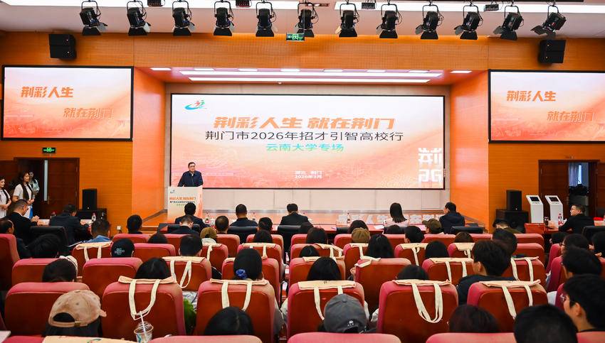 推介会上,荆门市全面介绍城市文化、生态环境、产业优势与发展前景,重点解读“荆十条”等硬核政策,校地共建“荆门驻点引才工作站”,并聘高校就业工作负责人担任“荆门市引才大使”,让西南学子直观感受荆门引才诚意与城市温度。