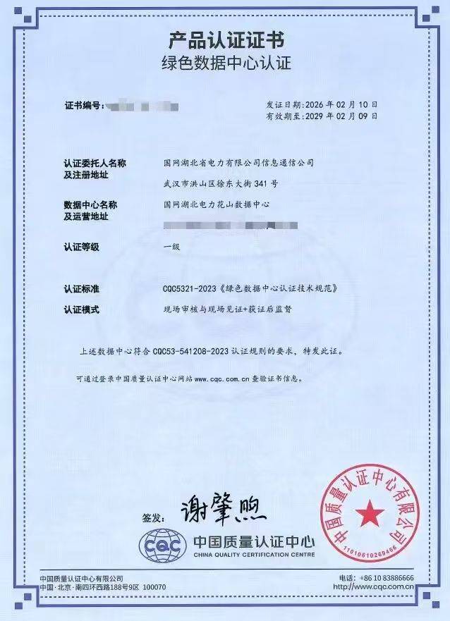 国网湖北信通公司花山数据中心获国家级绿色认证