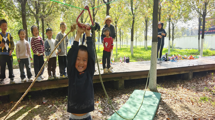在拓展体验区,孩子们化身“勇敢小勇士”,依次参与绳索挑战。紧握绳索、稳步前行的模样,既锻炼了肢体协调性,也培养了勇敢无畏的品质。一旁等待的小朋友大声加油,稚嫩的呐喊声回荡在林间,满是纯真的情谊。手工创作环节更是充满创意。孩子们利用废旧塑料瓶、彩色丝带等材料,亲手制作春日风幡。认真粘贴彩带、装饰瓶身的每一个瞬间,不仅践行了环保理念,更让想象力与动手能力在创作中尽情绽放。完成后的风幡被高高举起,五彩流苏随风飘扬,与孩子们的笑脸相映成趣,成为春日里一道动人的风景。活动尾声,孩子们齐聚草坪合影留念。一张张灿烂的笑脸定格下春日的美好瞬间,也为此次踏春活动画上圆满句号。