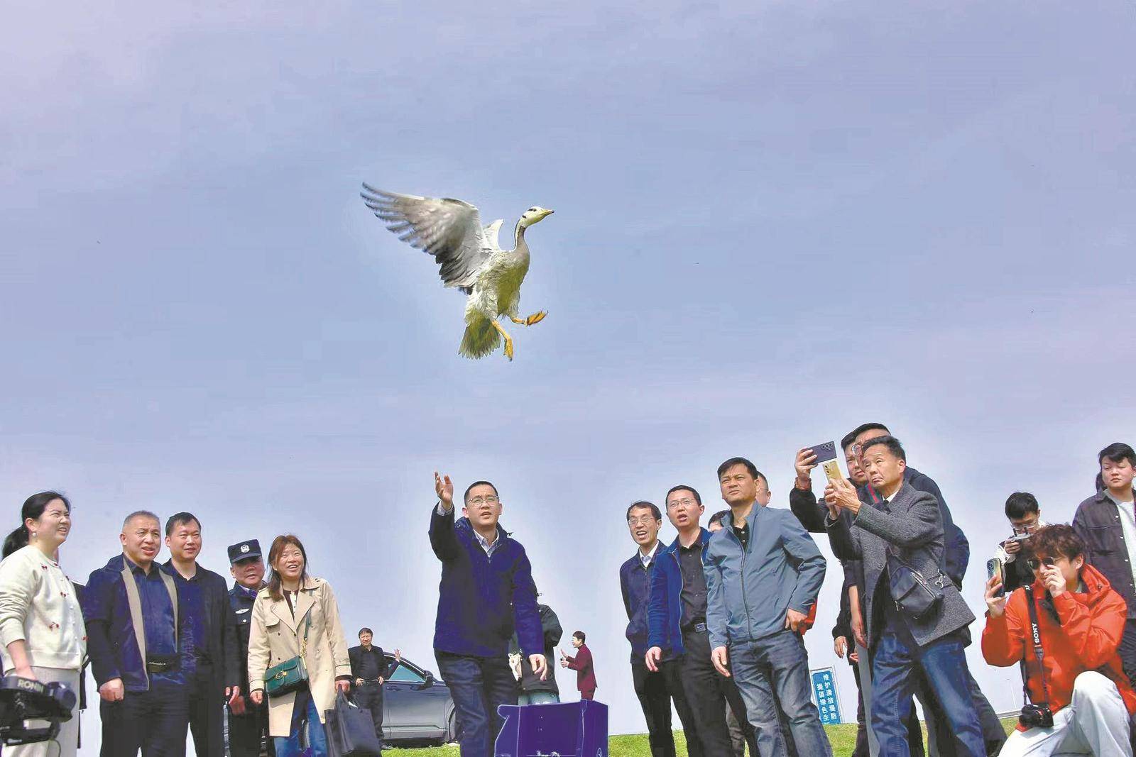 活动现场,经救护康复的黑鹳、雁鸭类、猛禽等野生动物被放归自然,同时开展湿地保护科普宣传,呼吁公众守护飞羽精灵,共绘生态画卷。(来源:襄阳日报 胡娟 何富芝 蔡以成 摄)