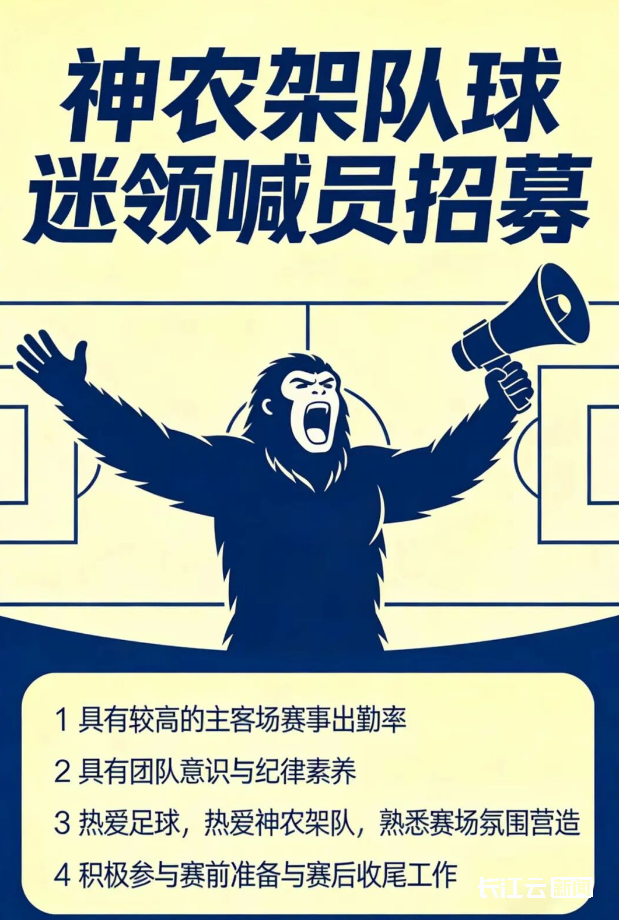 伴随球队踏上“楚超”征程,属于球迷的舞台也已同步开启。神农架足球队正式启动官方球迷啦啦队组建暨核心成员招募,邀请所有热情、有才、愿为家乡球队摇旗呐喊的伙伴加入,共同打造属于神农架的主场声势。需要具备特殊“技能”的您:无论是气场强大、能够带领千人方阵用口号点燃全场的“领喊员”(赛后含片管够),还是节奏感超群、能用鼓点掌控全场心跳的“鼓手”(请小心手速过快敲出残影),或是稳如泰山却能挥出风暴、让神农架旗帜高高飘扬的“旗手”,以及作为坚实后盾、负责组织协调确保方阵既有序又热烈的“志愿者”——每一种角色,都是组成赛场边“第十二人”震撼力量的关键部分。绿茵场边,期待与您并肩而立,共同吼出神农架的最强音。