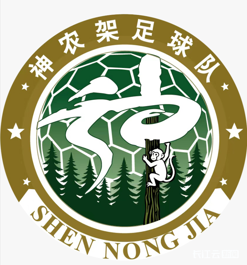 队徽整体设计融合了地域符号与运动理念。“神”字以足球纹理为底,既明确足球运动属性,更寓意球队以地域文化为魂,驰骋绿茵赛场;下方八棵冷杉,既彰显神农架生态特质,又象征林区八个乡镇同心聚力、携手共进;冷杉树和“神”字的笔画进行图形同构设计,并通过“神农架金丝猴”爬树造型,凸显出神农架作为生态王国中代表动物的魅力。